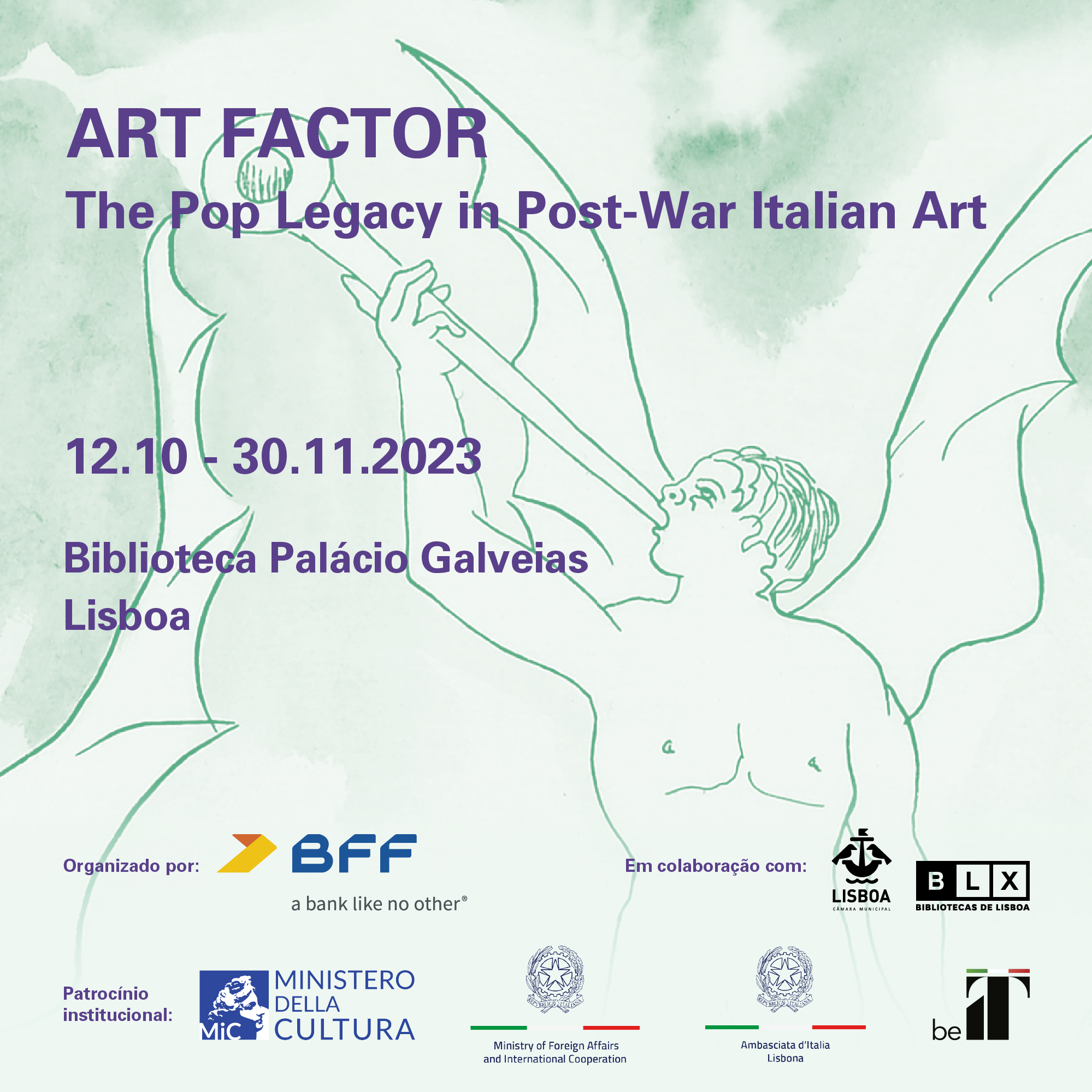 La mostra itinerante “Art Factor. The Pop Legacy in Post-War Italian Art” racconta il percorso italiano verso la Pop Art, attraverso le opere di Valerio Adami, Enrico Baj, Lucio Del Pezzo, Gianfranco Pardi, Mario Schifano ed Emilio Tadini, presenti nella collezione che BFF ha raccolto a partire dagli anni Ottanta. Con Lisbona, quinta tappa di un tour europeo che nel 2022-2023 ha visto protagoniste le città di Bratislava, Varsavia, Atene e Madrid, BFF inaugura il secondo anno di un percorso itinerante in Europa, nei Paesi in cui il Gruppo opera. La mostra si inserisce in un progetto più ampio, avviato da BFF nel 2019 con il censimento, il ricondizionamento e la digitalizzazione della collezione di circa 250 pezzi di arte contemporanea esposta in modo permanente negli uffici di BFF a Milano e a Roma. Il progetto è proseguito nel 2021 con la pubblicazione e la distribuzione a livello internazionale dell’omonimo volume d’arte, edito da Skira editore Milan Genève Paris, e culminerà nel 2024 in “Casa BFF”, nuova sede della Banca a Milano, in cui è prevista anche la creazione di un’area museale. La mostra sarà aperta al pubblico dal 12 ottobre al 30 novembre 2023.